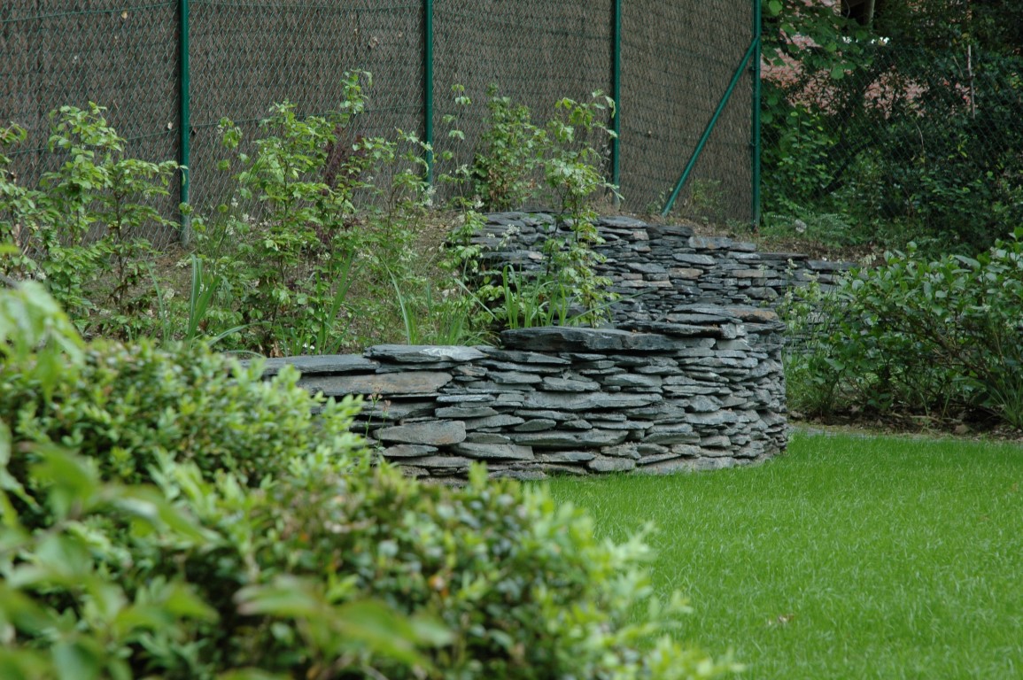Au-delà de leur aspect esthétique indéniable, ces murets jouent un rôle écologique fondamental. La maçonnerie sèche est, par définition, un ouvrage "vivant". Les interstices et les cavités laissés entre les pierres de schiste constituent des micro-habitats précieux. Quelques mois seulement après leur mise en œuvre, ces anfractuosités sont colonisées par une faune et une flore lithophyte spécifique : mousses, lichens, insectes auxiliaires et petits batraciens y trouvent refuge. En tant qu'architecte de jardin, intégrer de tels dispositifs permet de renforcer la biodiversité locale tout en offrant une structure durable au paysage.